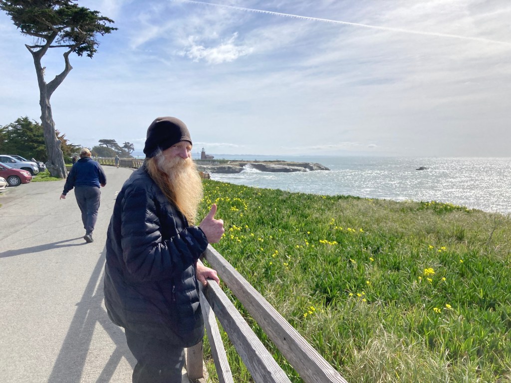 The first is of him from two years ago (2024) in Santa Cruz, on a good day out of the hospital. The second is the way I will always think of him (and us) from 1983 or 1984. Paul is the handsome guy sitting down.